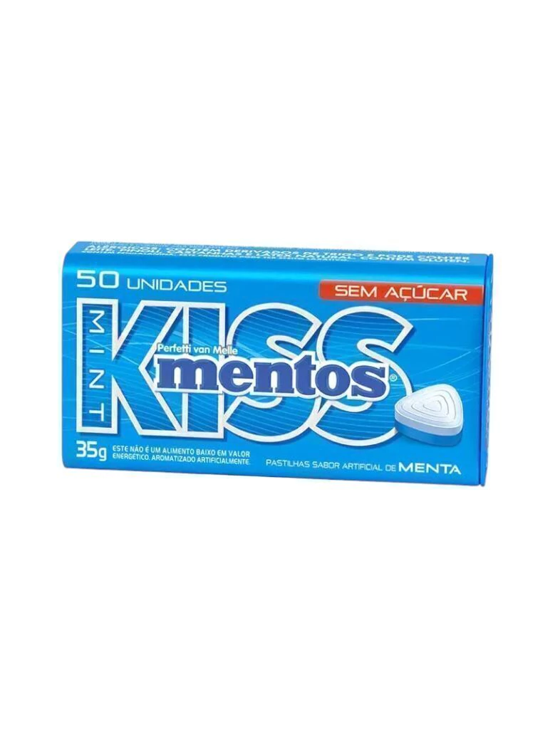 A mentos Kiss é uma pastilha com o sabor menta refrescante e prolongado, com um formato inovador, embalagem moderna e prática.